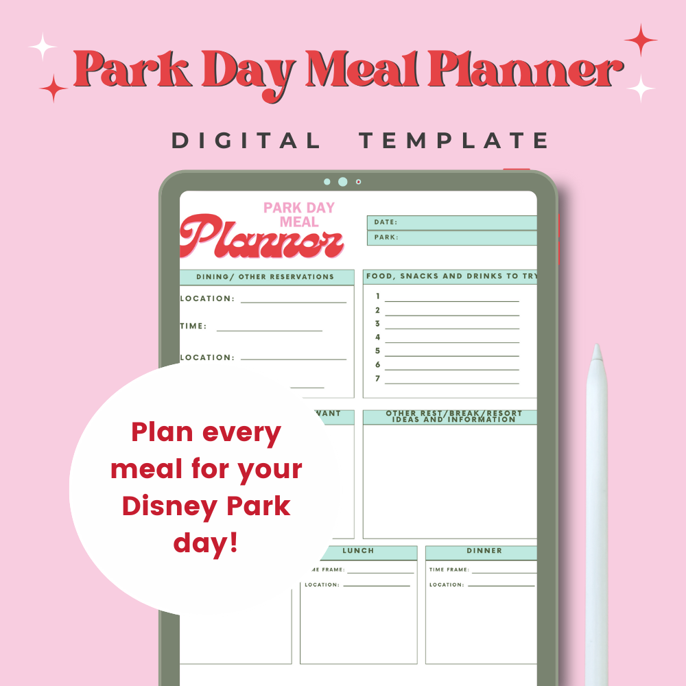 Blank Digital Disney Park Day Meal Planner